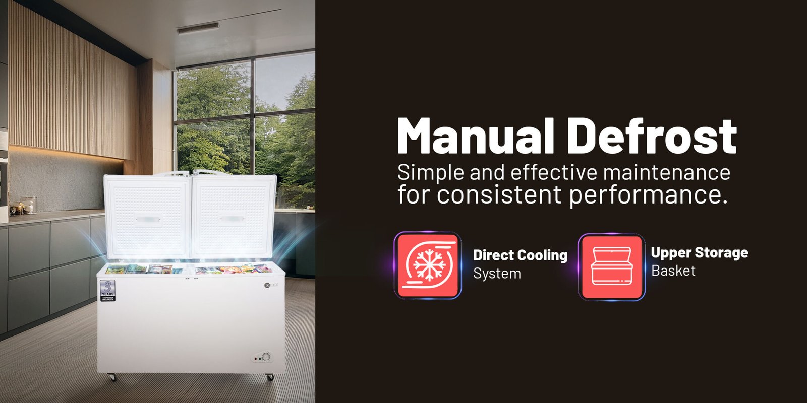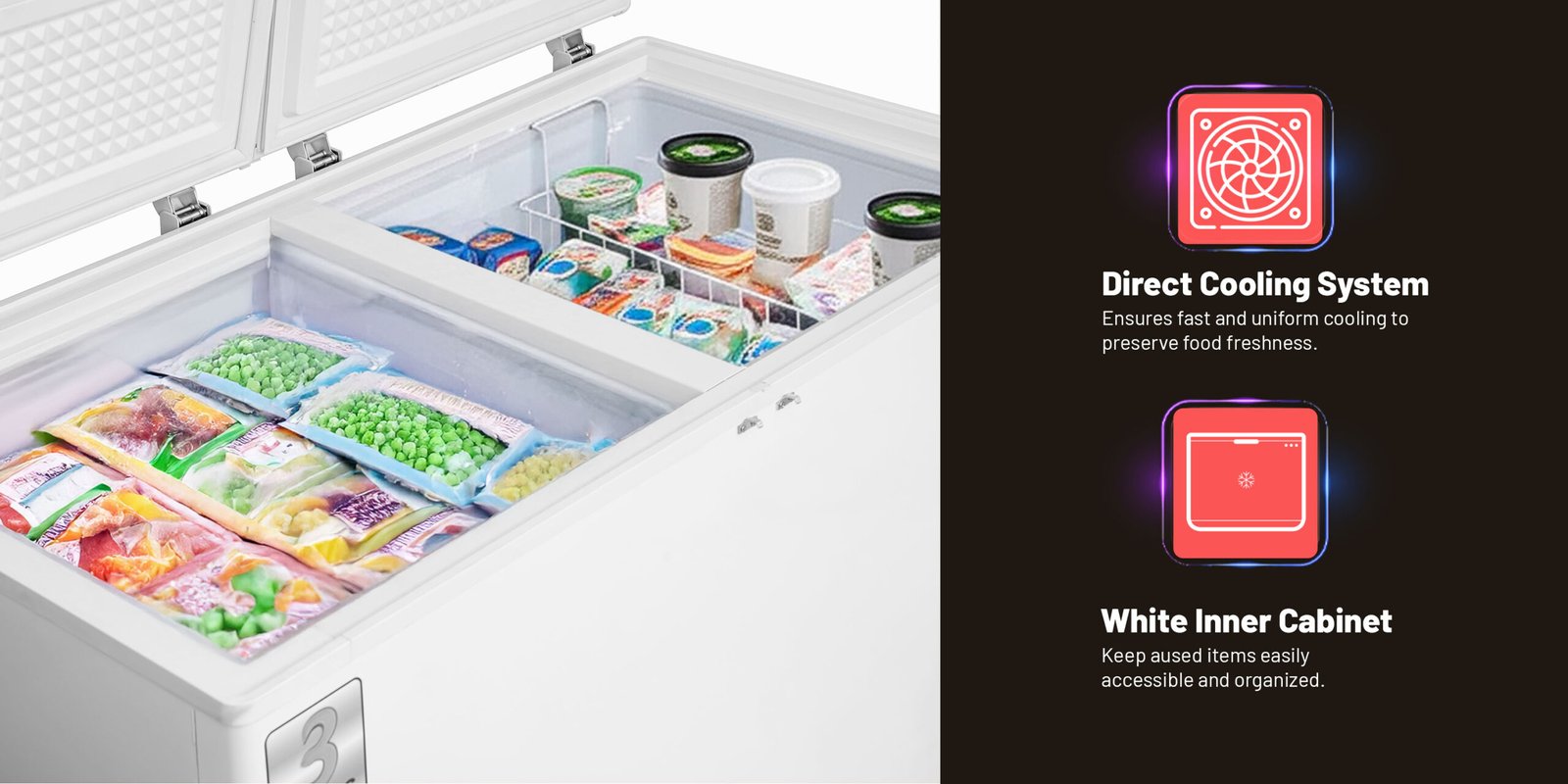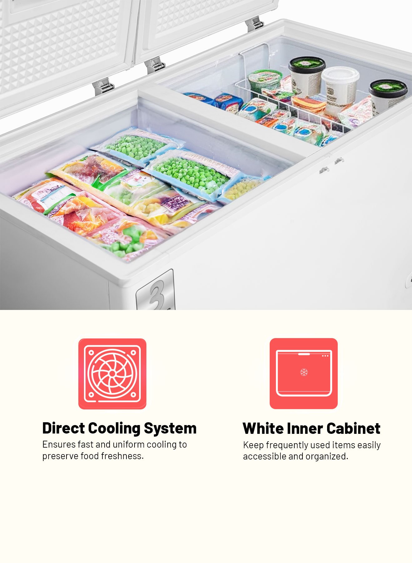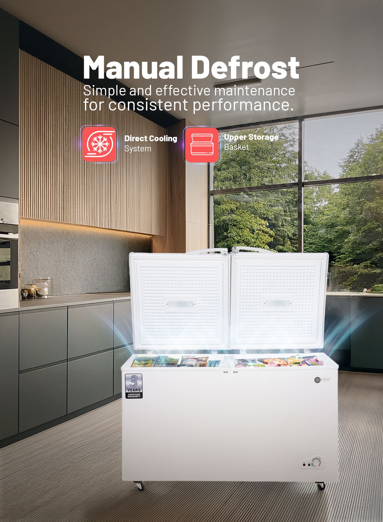 AFRA 525L Double Door Chest Freezer – Model AF-5500CFWT | 550L Gross, White with Lock & Condenser
