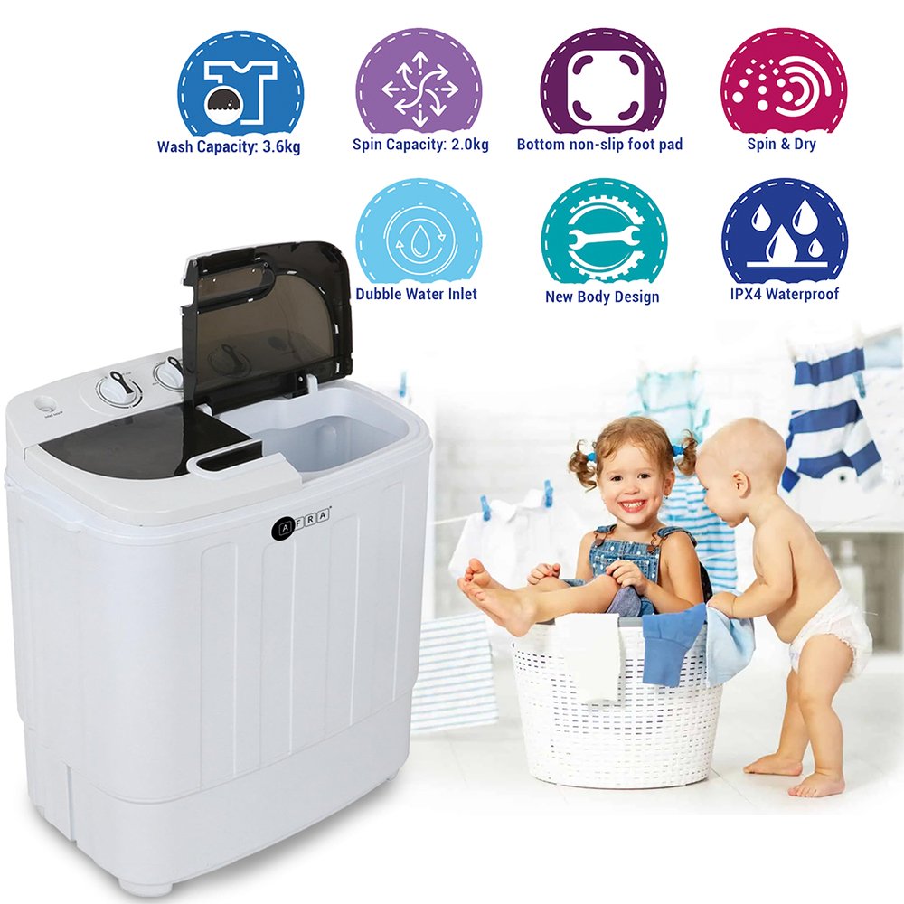 AFRA Baby Washing Machine AF-3624BWTT is a smart, compact solution designed specifically for washing baby clothes and light laundry loads. With a 3.6kg capacity, this portable washing machine is ideal for apartments, dorms, and homes with limited space. It features elution separation technology that ensures better wash quality by effectively removing detergent residues. Its built-in spin and dry function allows faster drying, while the non-slip foot pads provide added safety during operation. Operating on 220-240V at 50-60Hz, this energy-efficient model is perfect for daily convenience. Comes with a 1-year warranty for peace of mind and long-term use.