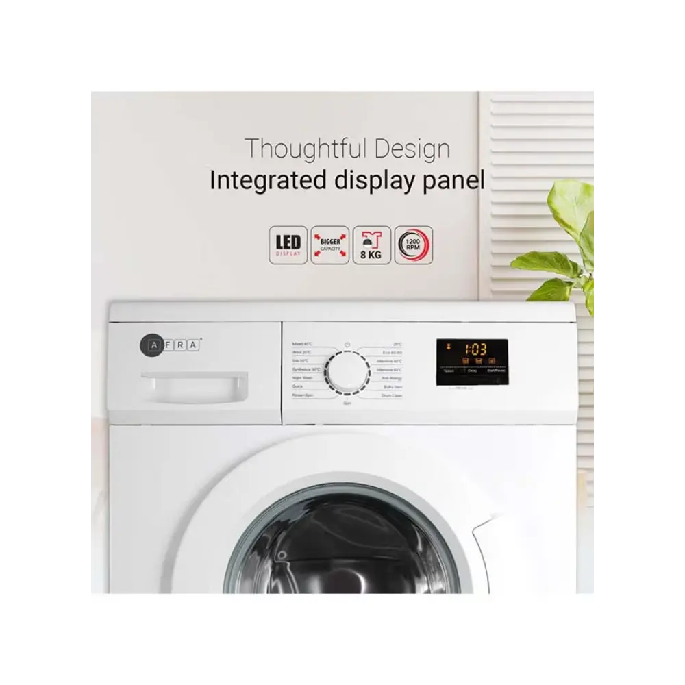 Introducing the AFRA Front Load Washing Machine 7KG 1200 RPM – Model AF-7120WMWT, a smart and efficient laundry solution tailored for modern homes. With a robust 1200 RPM spin speed and 7KG load capacity, it ensures faster drying and deep cleaning for all types of garments. The AF-7120WMWT is equipped with multiple wash programs, energy-saving features, and a sleek design that complements contemporary interiors. Its silent operation, child lock safety, and easy-to-use controls make it a reliable choice for families. Trust AFRA for durability, innovation, and everyday convenience in your laundry routine.